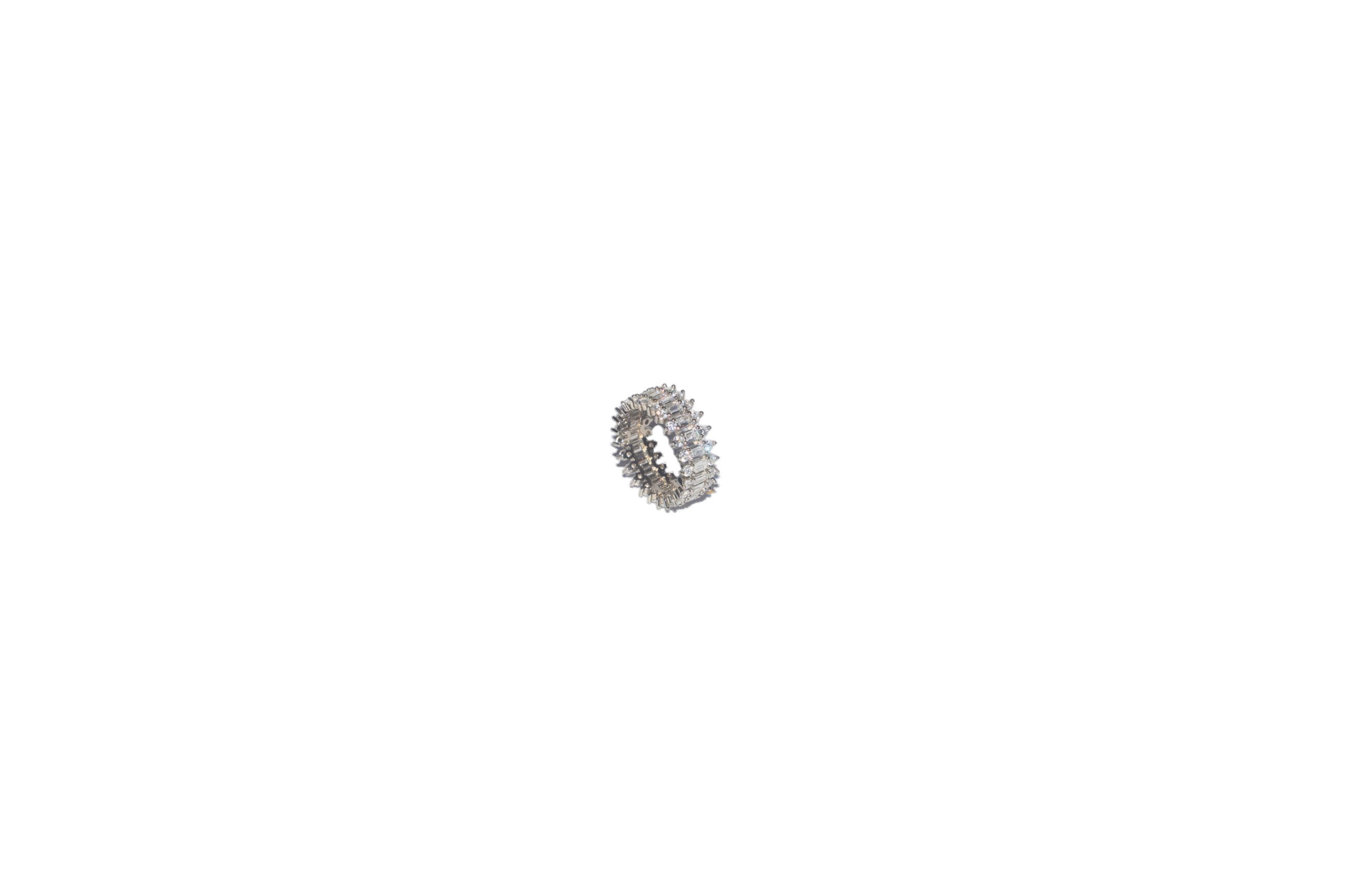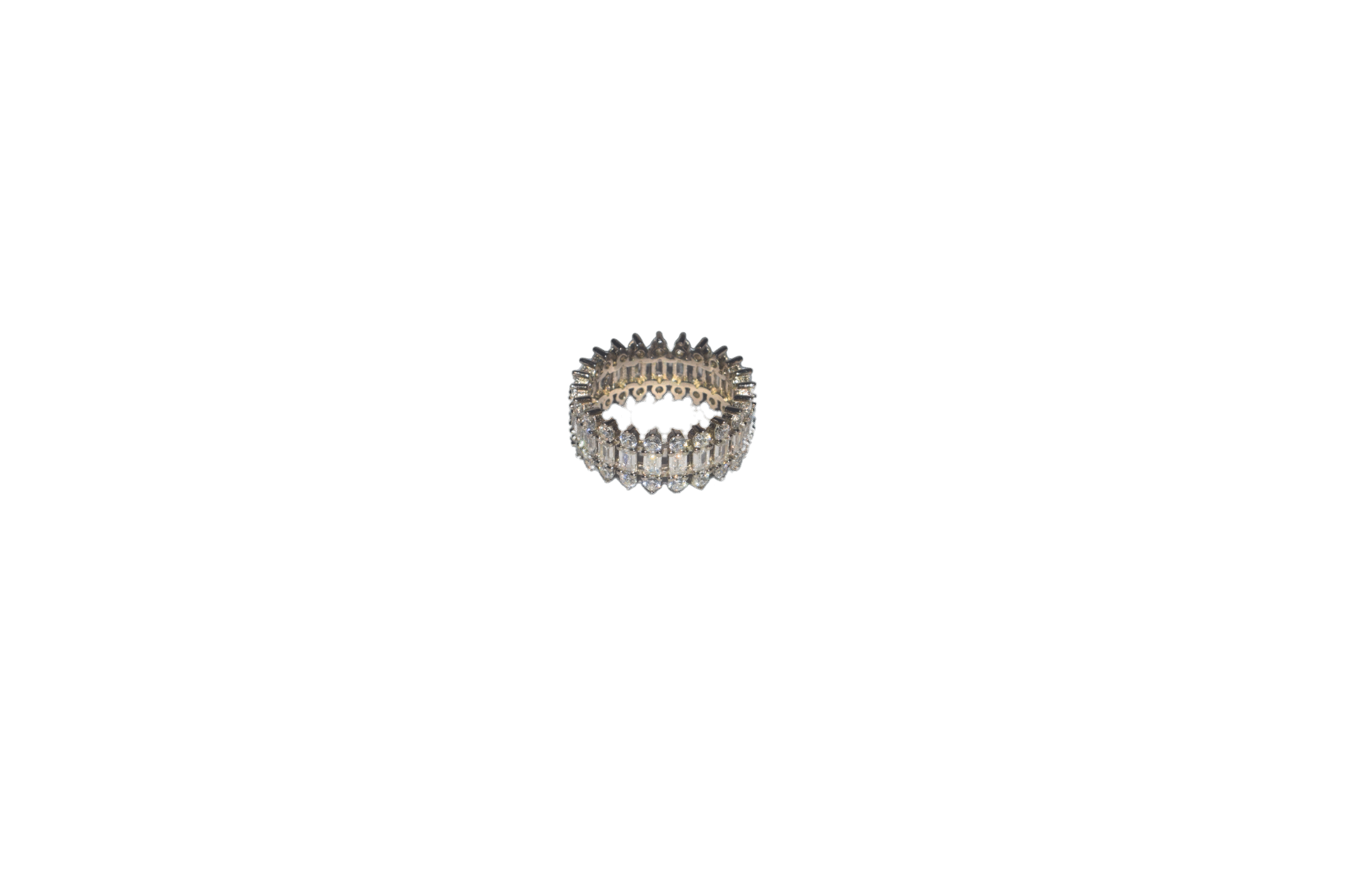 Crafted in sterling silver, this women’s eternity band sparkles with brilliance from every angle. Featuring a row of marquise-cut and round-cut stones set seamlessly around the band, the ring captures light beautifully for a radiant, timeless look. Its intricate design balances bold shine with refined elegance, making it a perfect choice for both everyday glamour and special occasions.