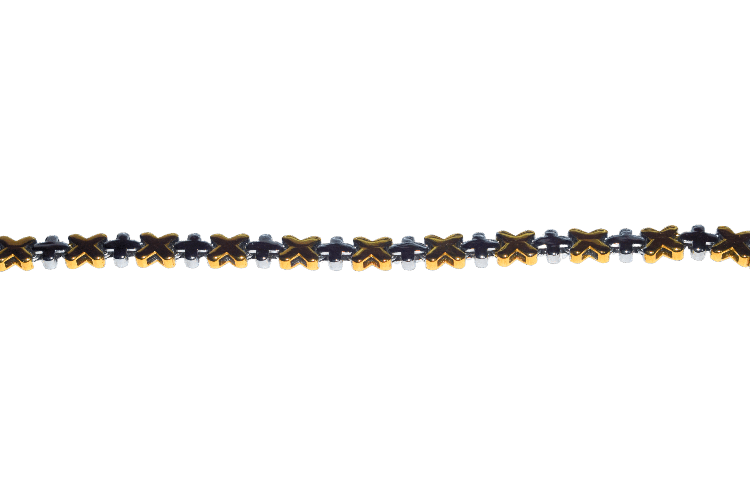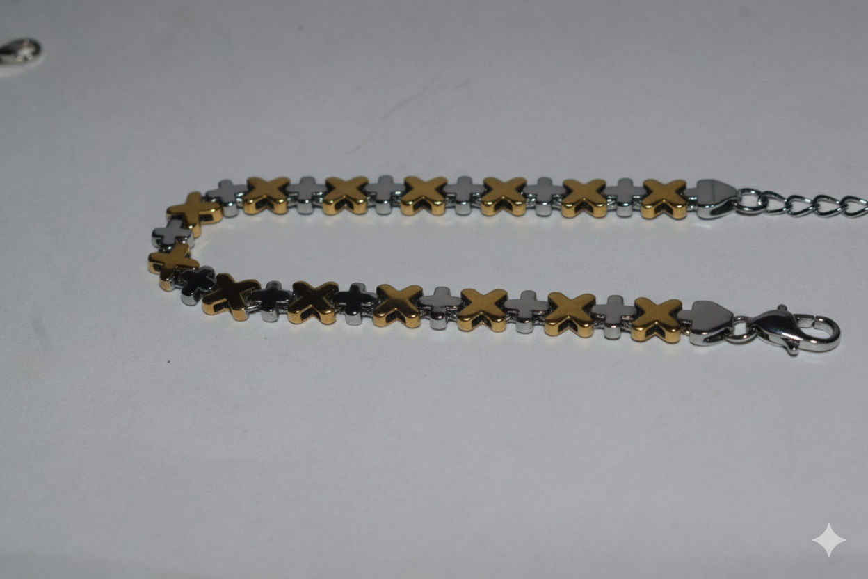 Elevate your everyday elegance with this stunning 925 sterling silver women’s bracelet, featuring a chic dual tone design in silver and golden finishes. Crafted with precision, the bracelet showcases stylish “X” patterned links, blending modern sophistication with timeless charm. The high-quality sterling silver base ensures durability, while the golden accents add a luxurious touch, making it perfect for both casual and formal wear. Designed with an adjustable clasp for a secure fit, this bracelet is an ideal accessory for women who love to express their unique style. Whether worn solo or layered with other jewelry, this dual-tone bracelet is a must-have addition to your jewelry collection.
