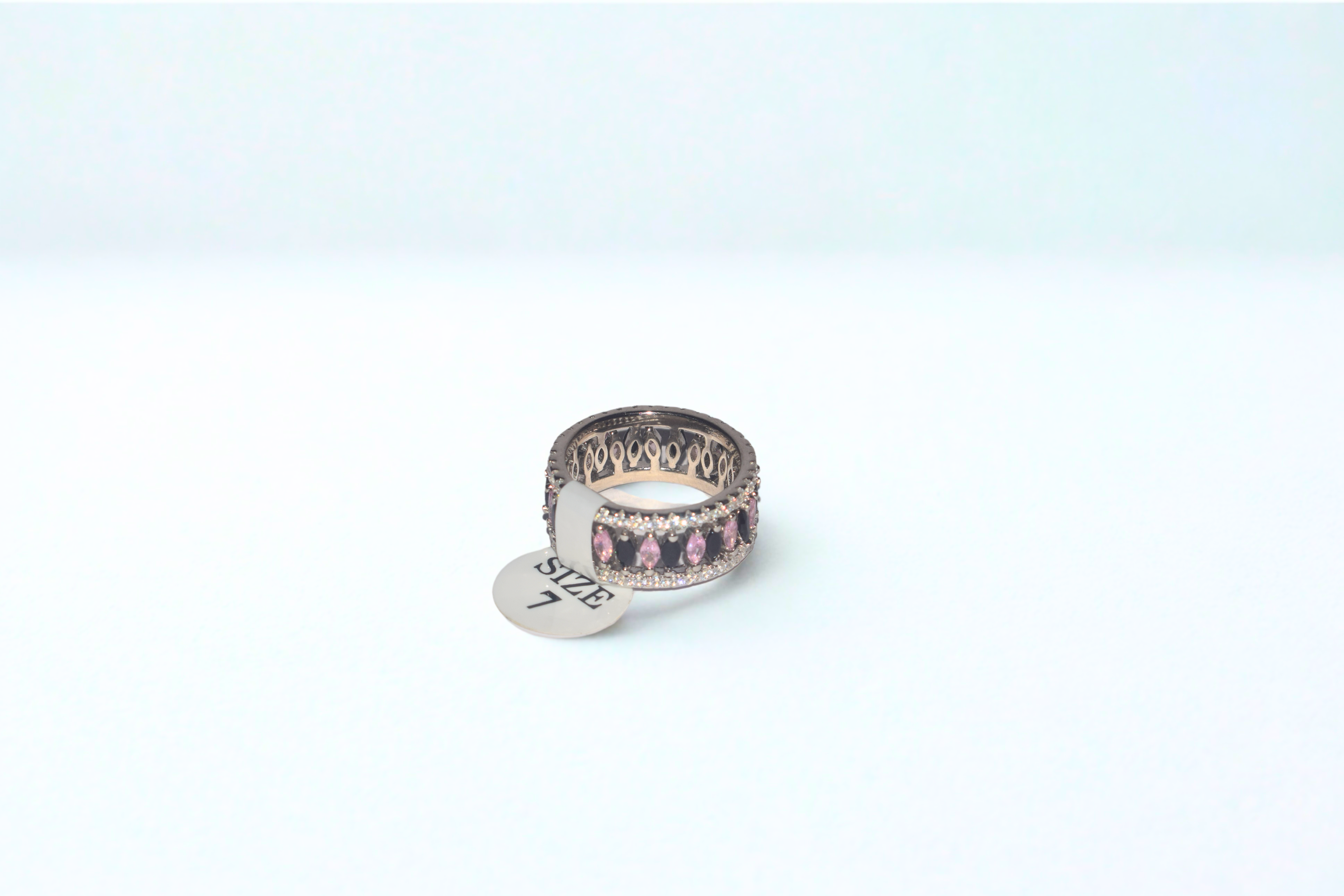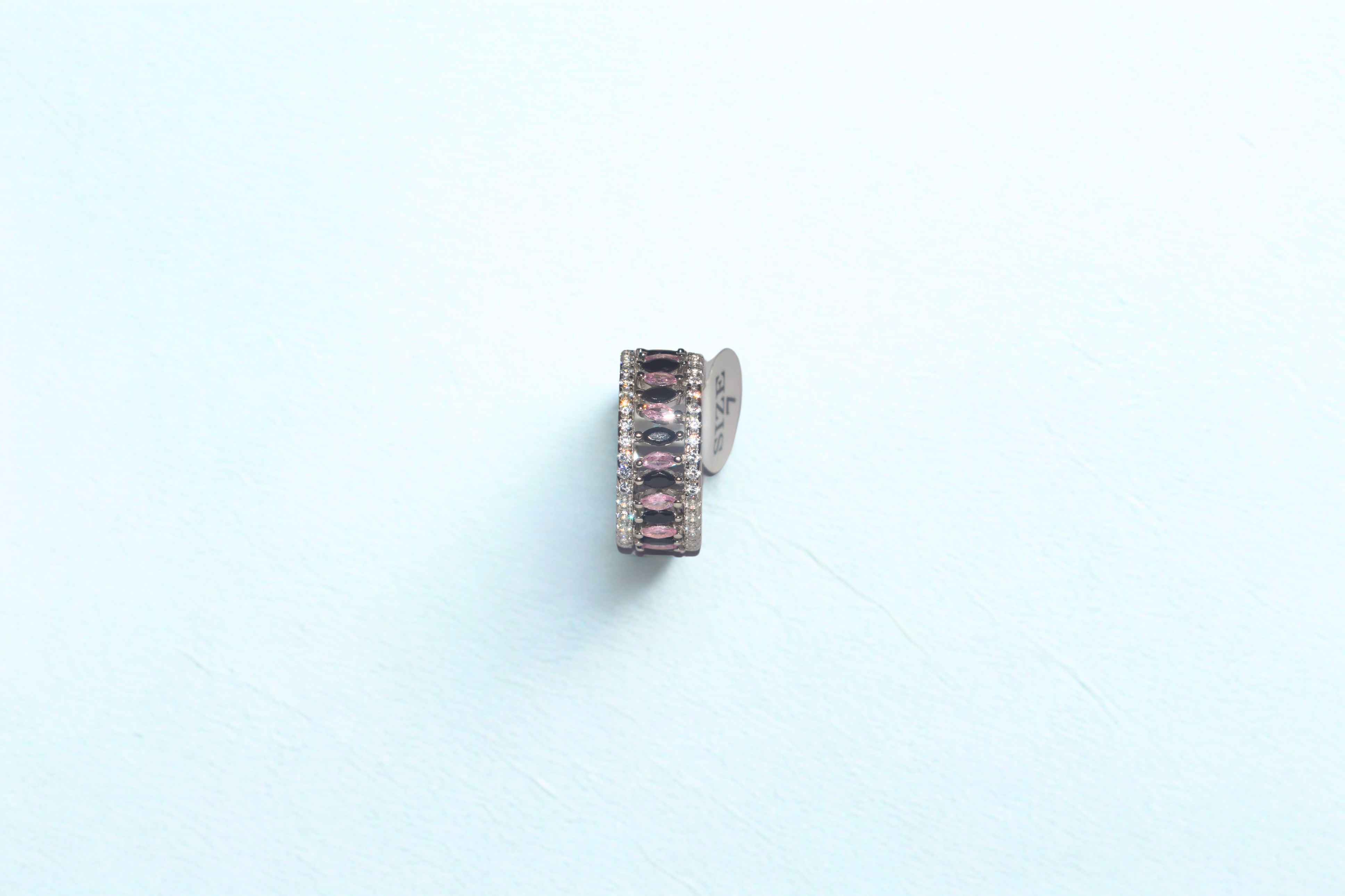Rule with elegance and grace in the Pink Empress Ring, masterfully crafted from 925 sterling silver. This regal band features a row of radiant pink marquise-cut stones framed by sparkling cubic zirconia, creating a bold yet sophisticated look. The intricate detailing on the band adds depth and luxury, making it a true statement piece for women who love to stand out. Perfect for parties, special occasions, or as a gift fit for a queen, this ring brings together modern glamour and timeless charm.