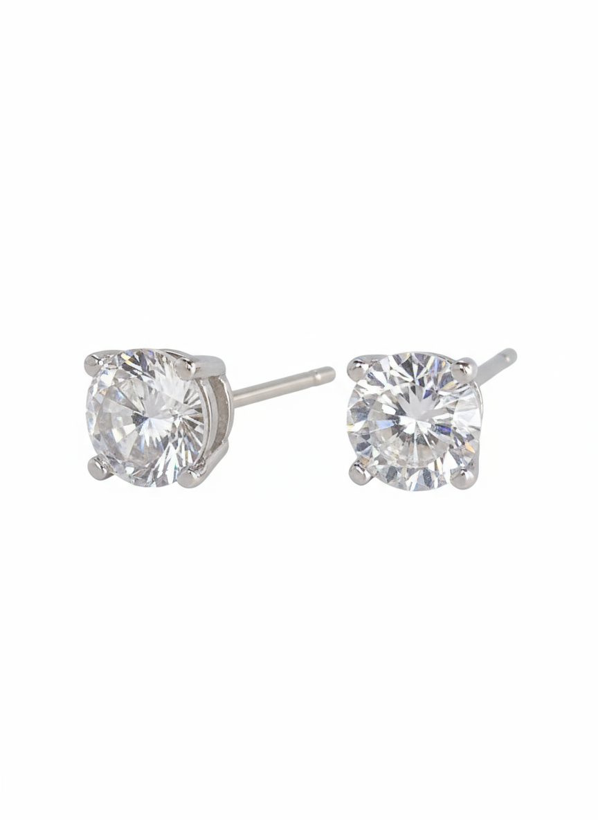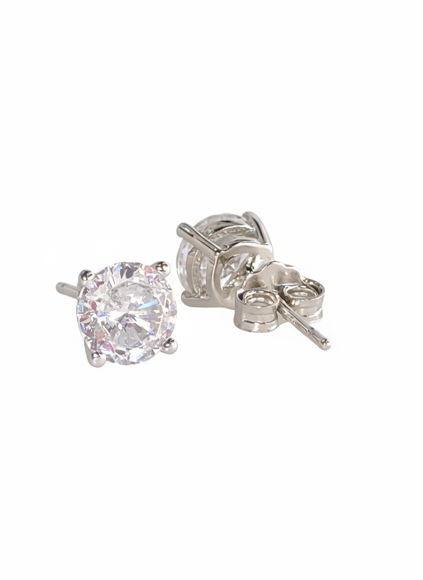 Discover classic elegance with these exquisite sterling silver stud earrings. Each earring features a brilliant, round-cut cubic zirconia stone, meticulously set in a four-prong setting that maximizes its sparkle and brilliance. The solitaire design creates a timeless look, making them a versatile staple for any jewelry collection. Crafted from genuine 925 sterling silver, these earrings are durable, hypoallergenic, and perfect for sensitive skin. They are secured with a comfortable and reliable push-back closure. Ideal for everyday wear or for adding a touch of glamour to a formal outfit, these cubic zirconia stud earrings are a must-have accessory that combines classic style with stunning affordability.
